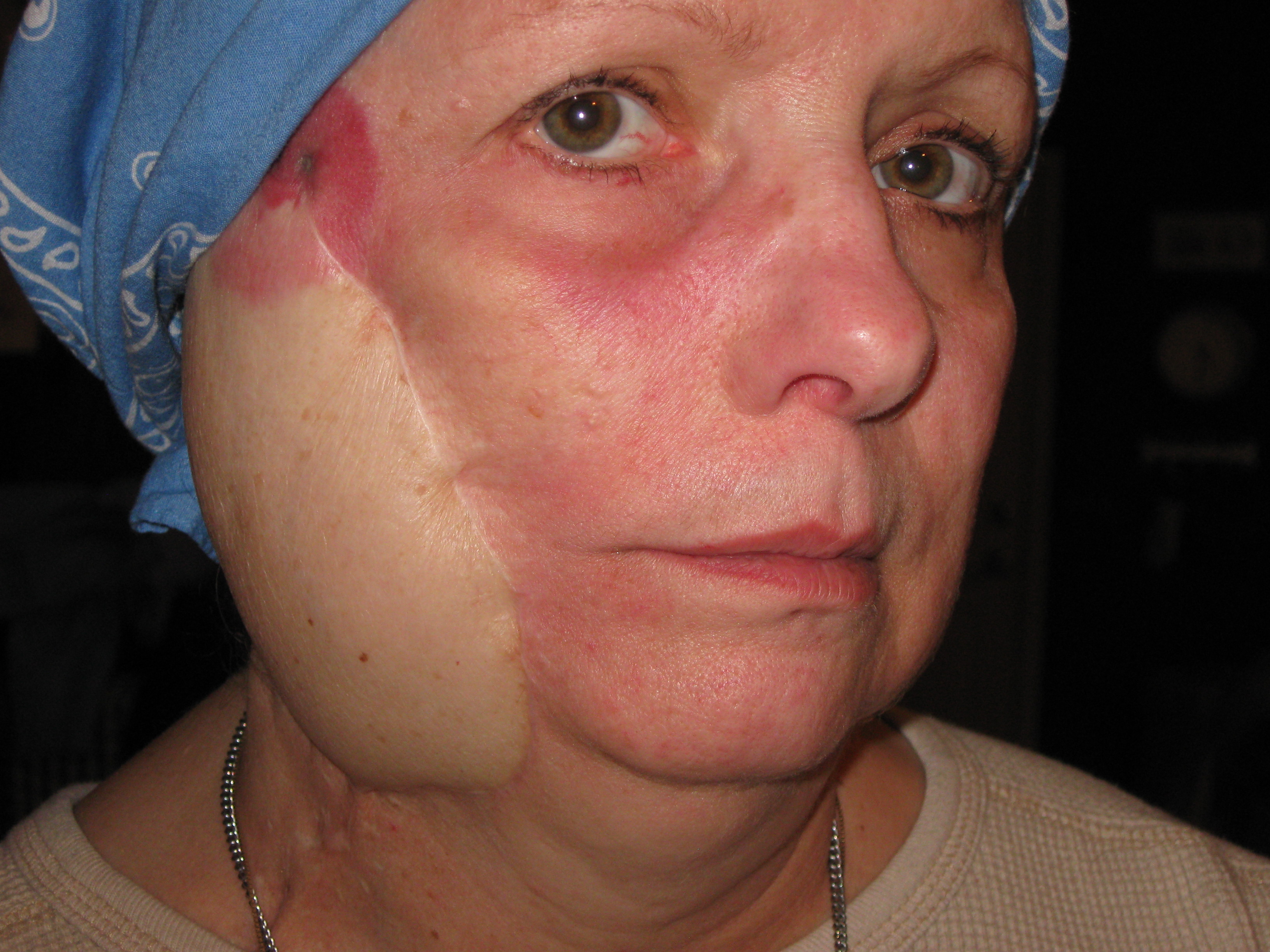 portion of the right side of her face was removed, along